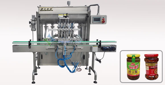 采用国内很新技术,根据以往客户遇到的问题,经过不断努力而研发成功的一种辣椒酱灌装机,配置在国内非常高端!解决了广大客户的后顾之忧,灌装精度高,生产效率高,计量精准,是粘稠物料的很佳选择!物料接触部位全部采用316L高级不锈钢制成、动力使用台湾亚德客气缸推动、整机干净大方、动力强劲,使星火公司很多客户顺利解决了ISO2000和QS认证.